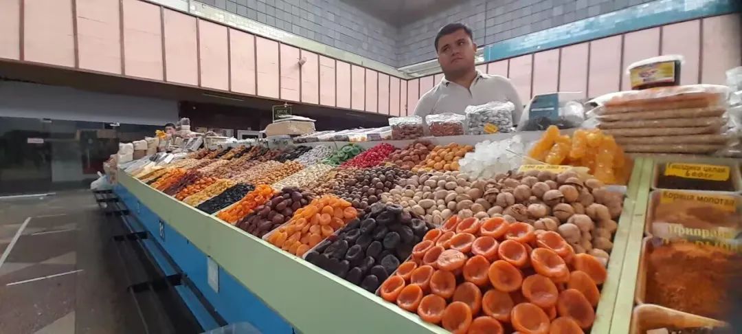 很多摊主都是塔吉克人,他们分为两类:来自塔吉克斯坦北部的人卖干果,来自南部的人卖新鲜水果。